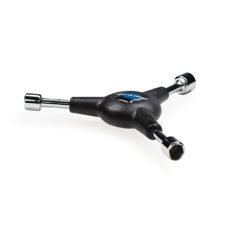 The three most common bolt and nut sizes are combined with the classic Park Tool 3-way Y body. 8mm, 9mm, and 10mm forged CR-V steel sockets.